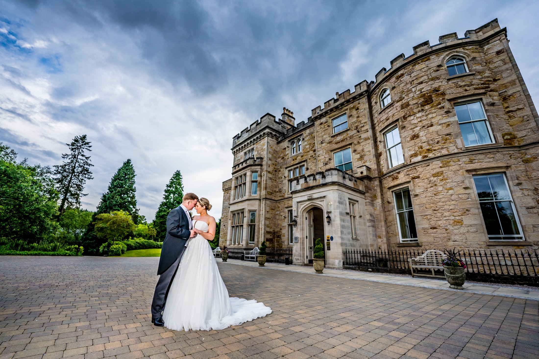 I love the feel of Crossbasket Castle - it’s luxurious bit without feeling “stuffy”. There’s a lovely atmosphere to the place that helps you relax, it almost feels like a home-from-home but still has unique surroundings which makes it a very special place to hold a wedding. There’s such a varied range of backdrops to use for wedding photos here too - from the impressive Castle itself, to the front garden & driveway, the fountain, the river walk and the lovely, spacious interiors - for a photographer, it’s a great place to work, loaded with so many amazing backdrops to use.